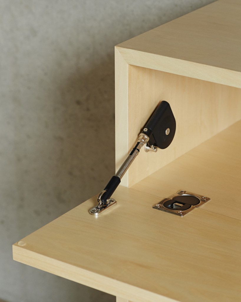 ソフトダウン式の扉がついた上部には、書類や文房具のような細かいものを。