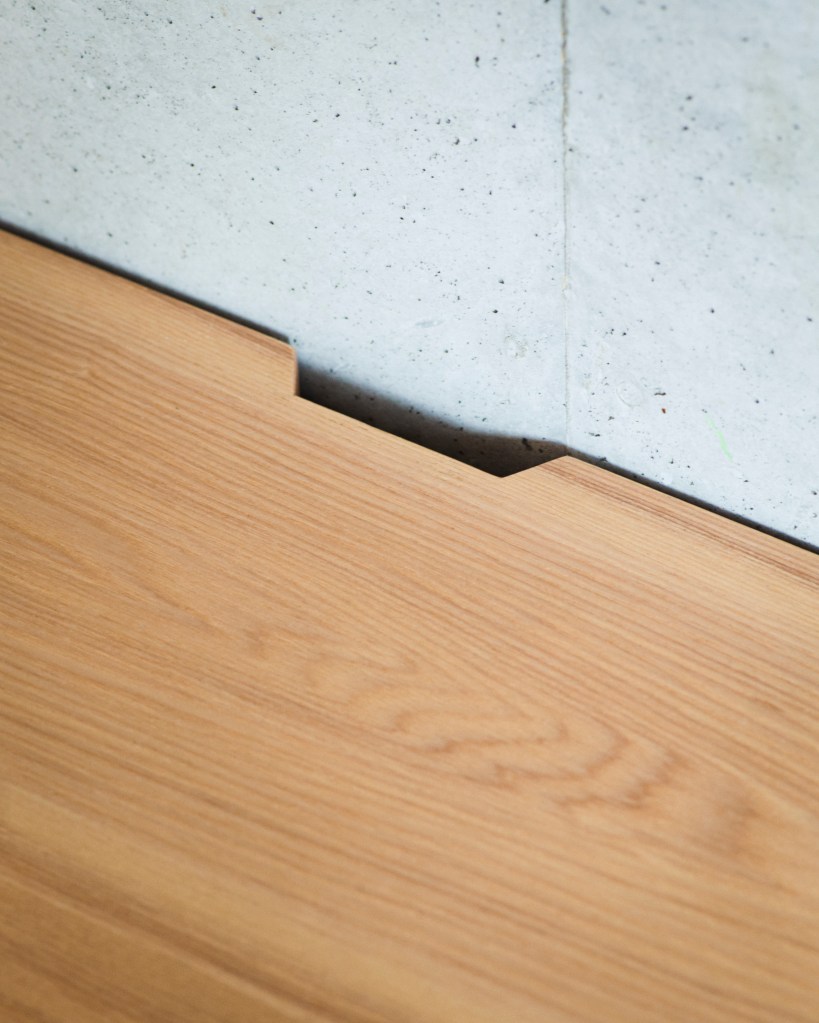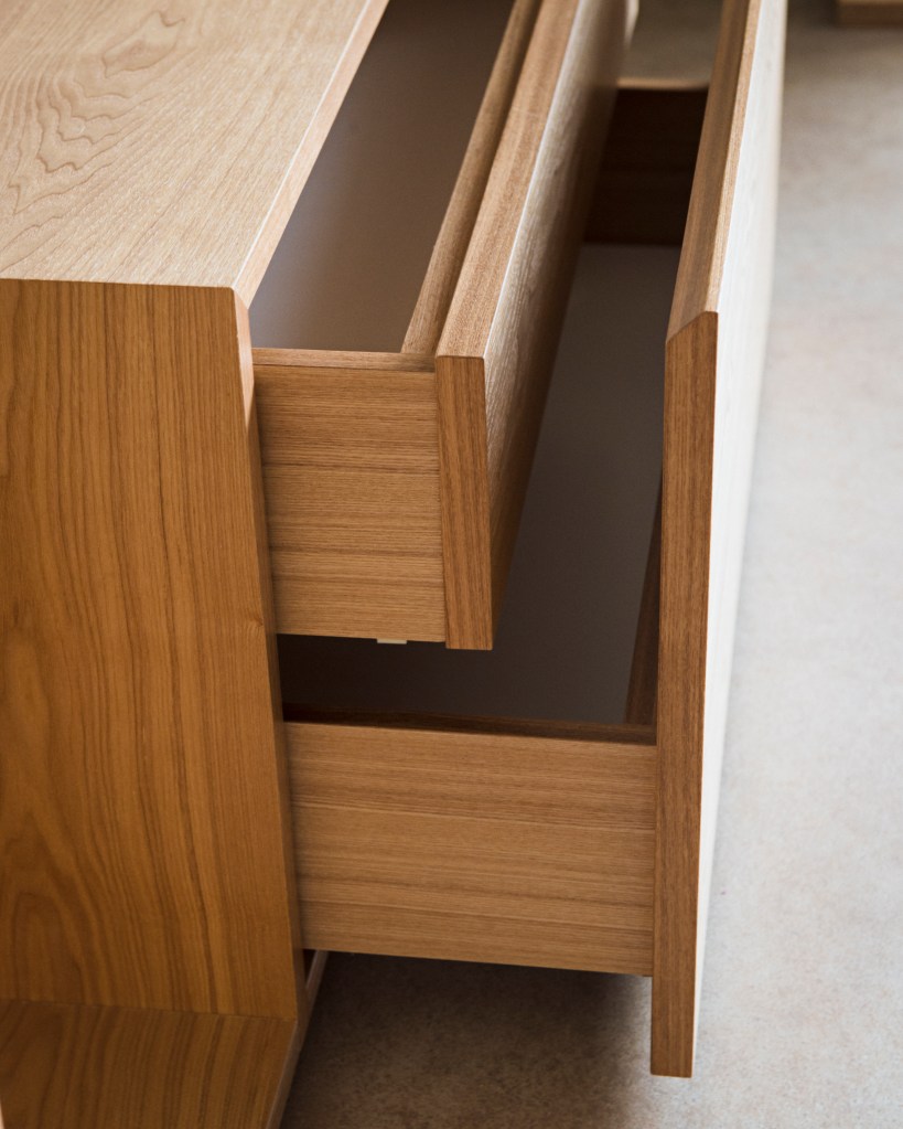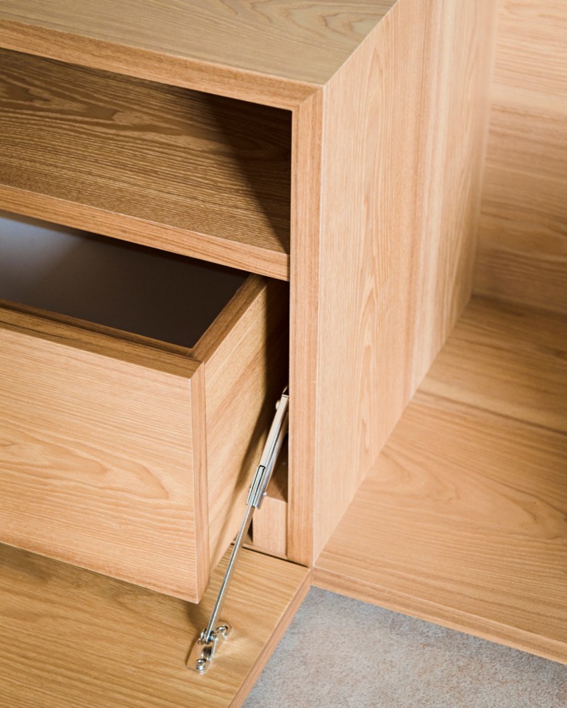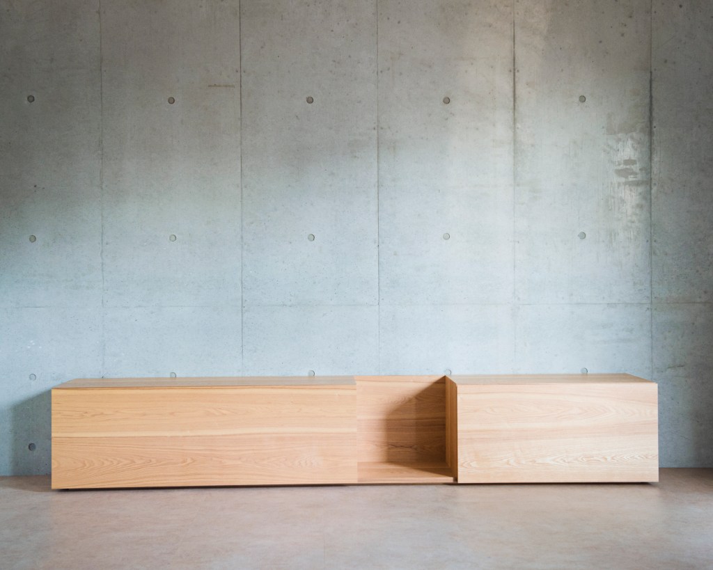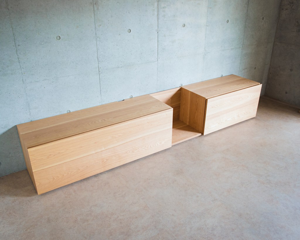 木の表情を最大限に活かしつつ、内部には大容量の収納を確保しています。